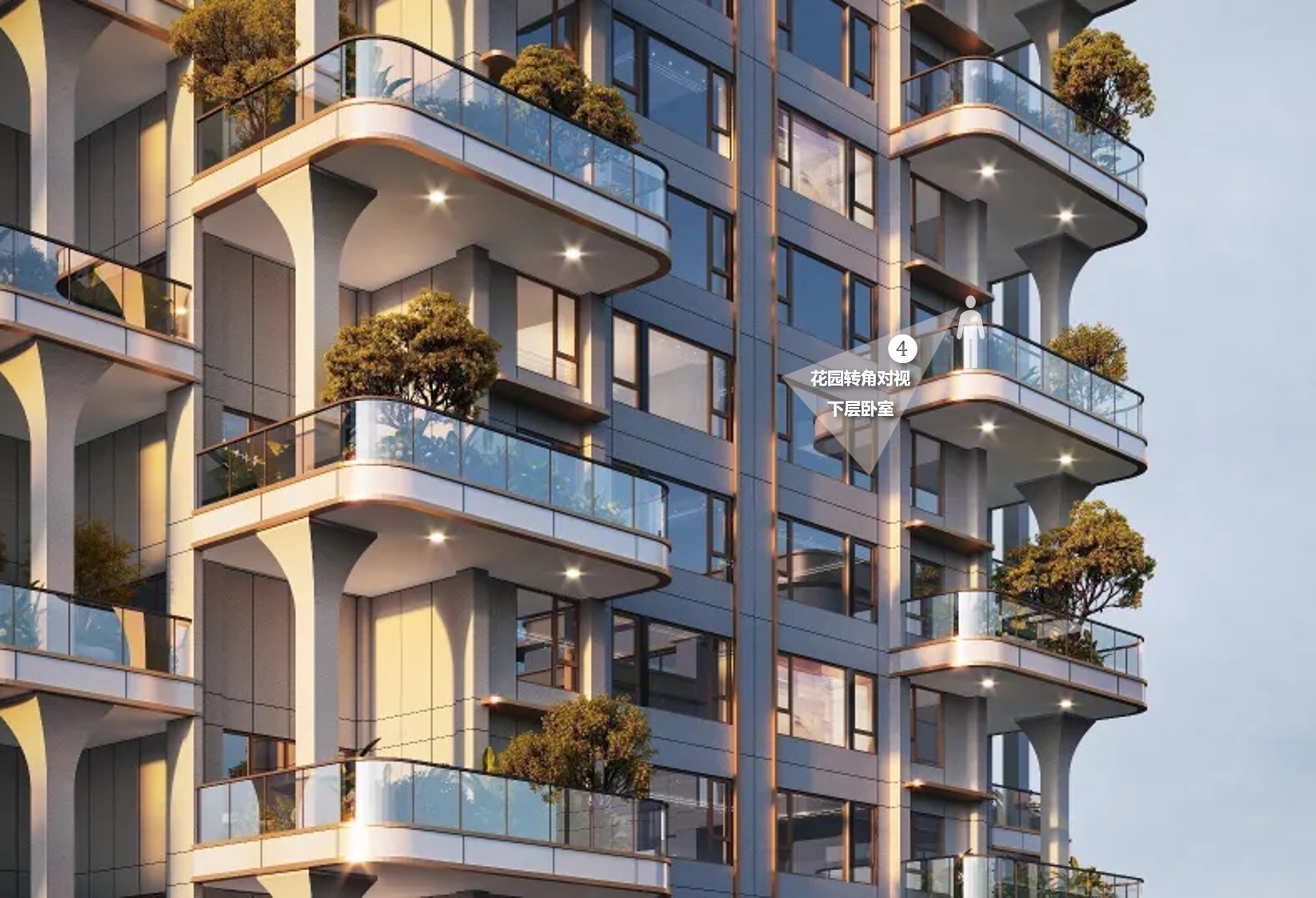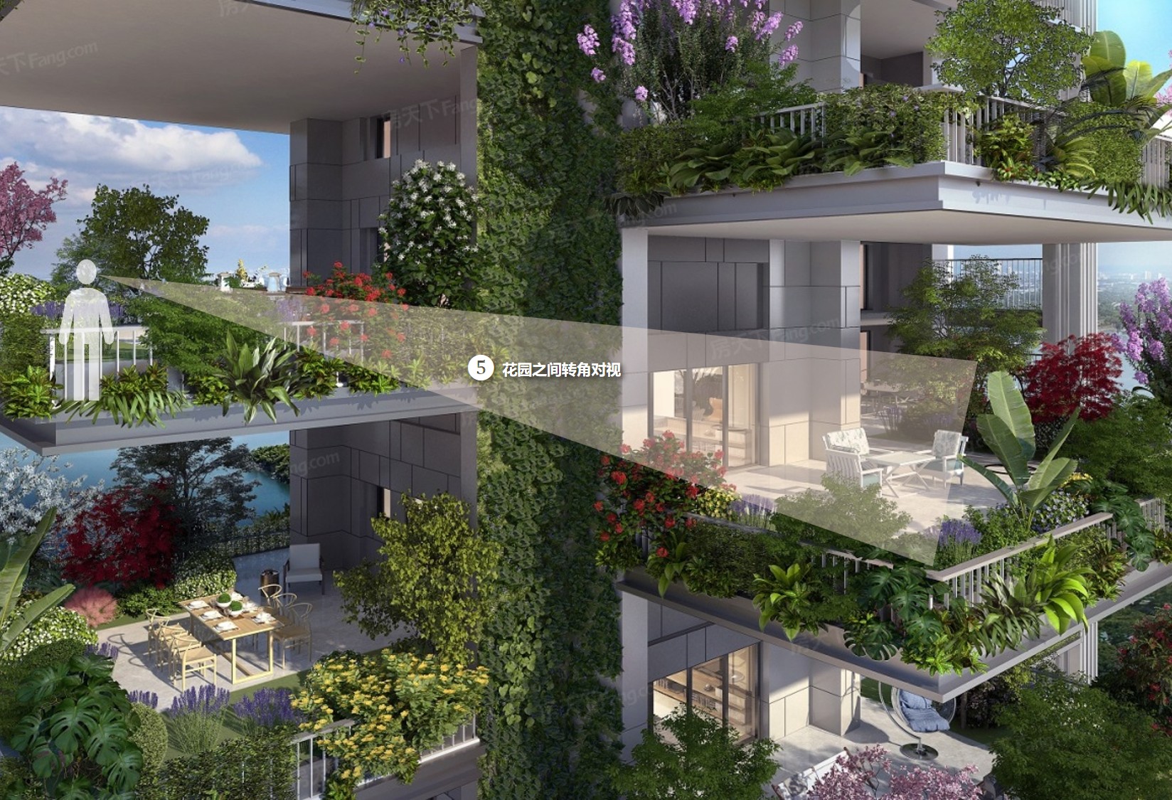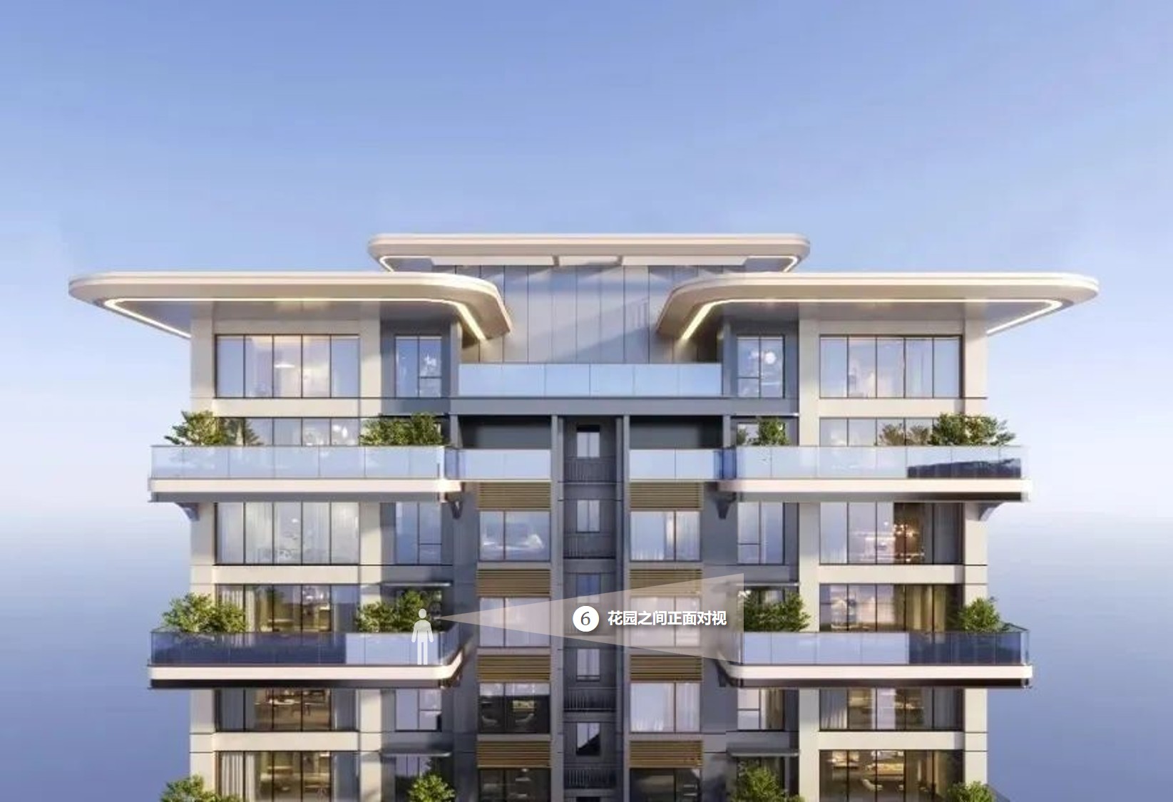4、上下层空中花园之间正面对视、转角对视