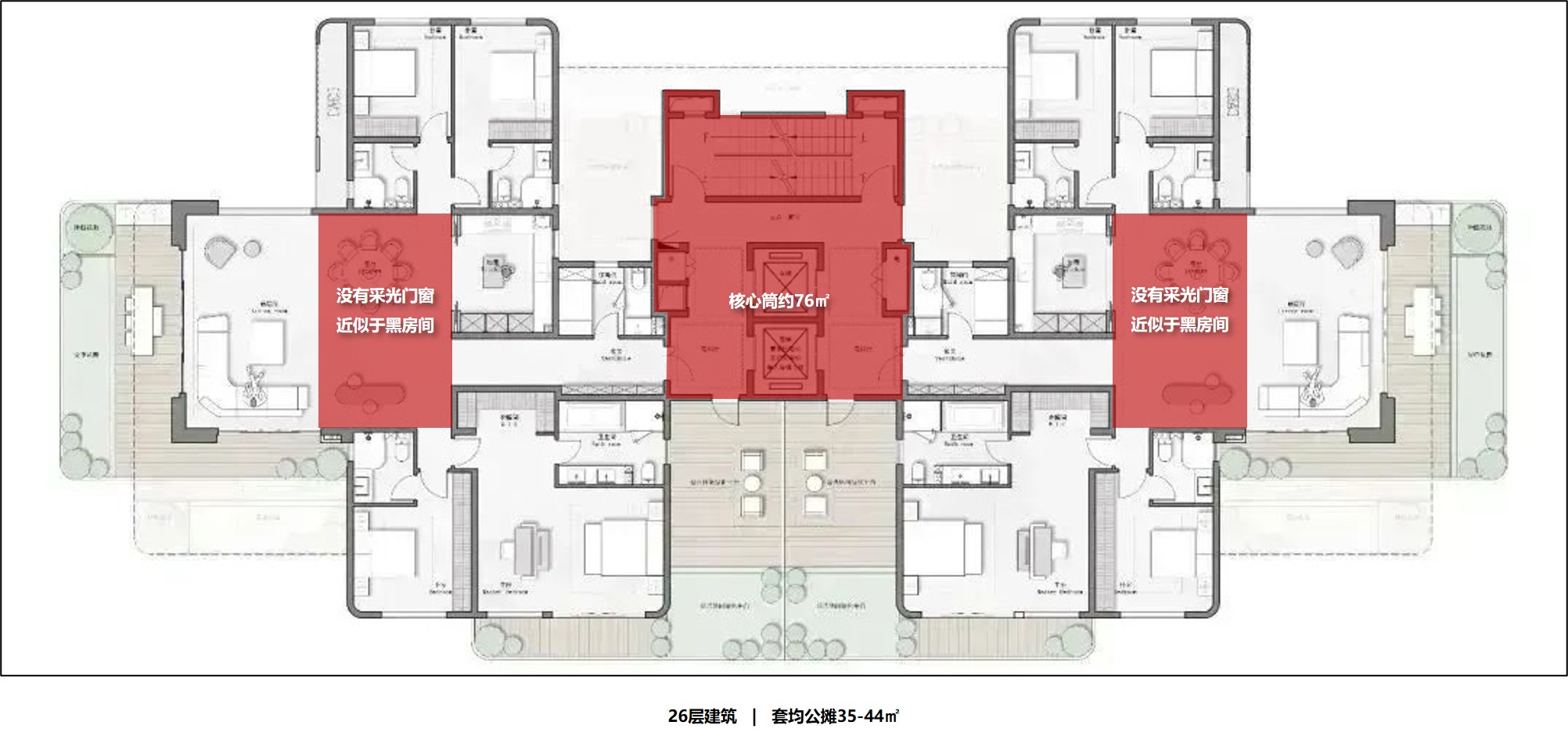 二、空中花园和套型的安全私密性差