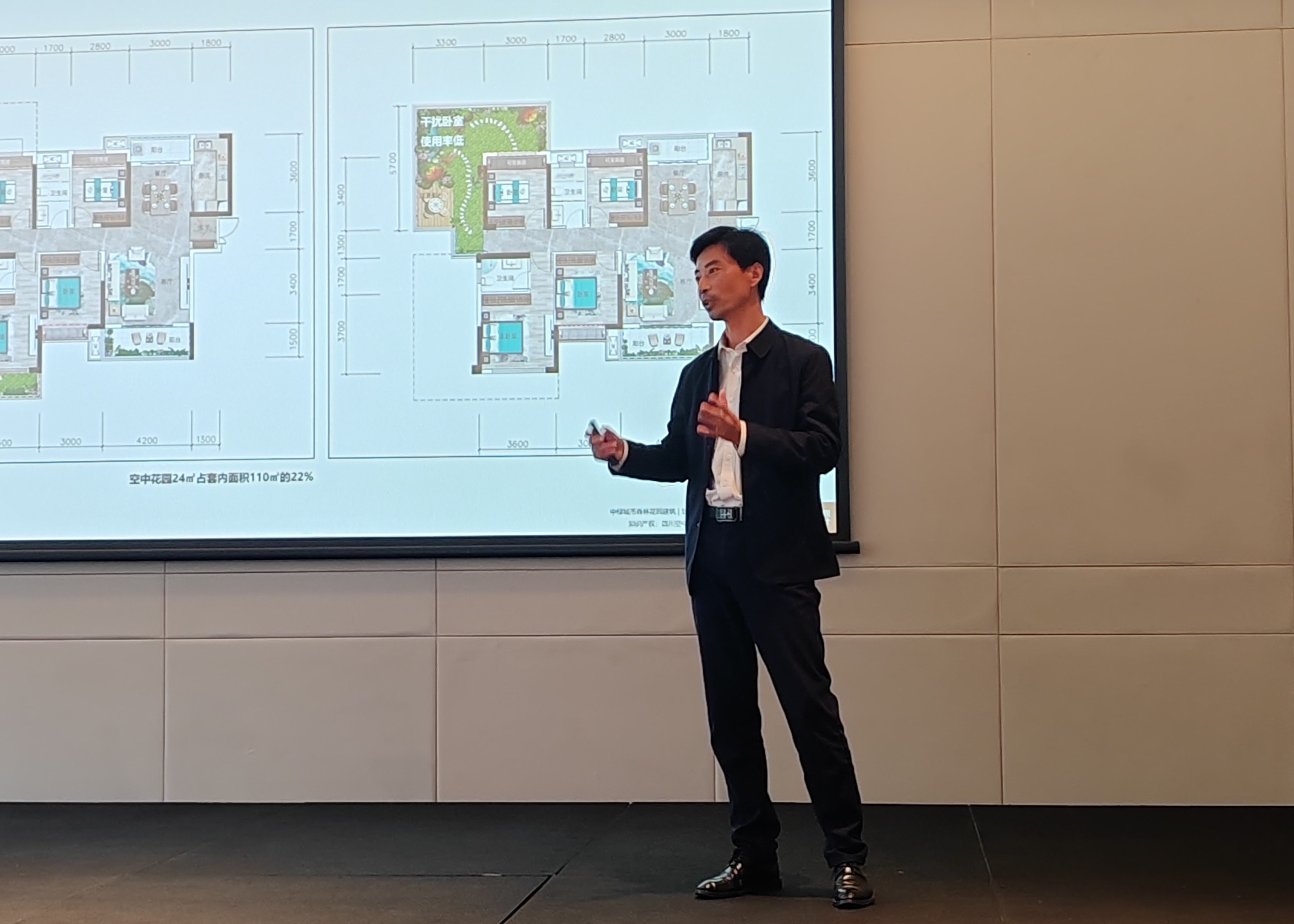 胡洁介绍了四代住宅相关的名称,城市花园住宅是好房子的重要载体,空中花园和空中院落是当前商品住宅增大赠送面积的主要方式,22个省份113个城市发布了城市花园住宅开发建设的支持政策,350余个城市花园住宅销售,城市花园住宅已成为商品住宅开发的主要趋势之一。胡洁分析了当前城市花园住宅普遍存在的问题,空中花园面积小导致赠送面积小、销售价格难以提升、销售速度提升有限、使用功能需求没有完全满足,空中花园和套型安全私密性差,公摊面积大,日照采光通风差,人居品质低,建安成本高。